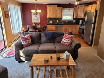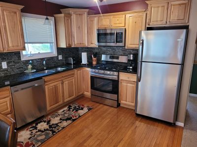 The real highlight of the home is the large backyard deck with a new deluxe 4-person hot tub, outdoor dining furniture, and a new high-end Weber gas grill. There is also a fun and family-friendly bonfire ring in the backyard near the woods behind the house. The rental includes use of the 2-car attached garage, which is great for easy entry and exit as well as keeping cars free of snow in the winter.