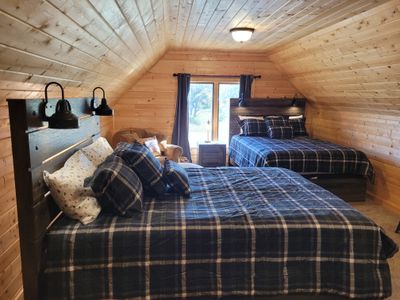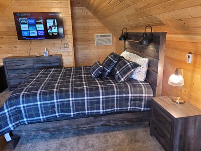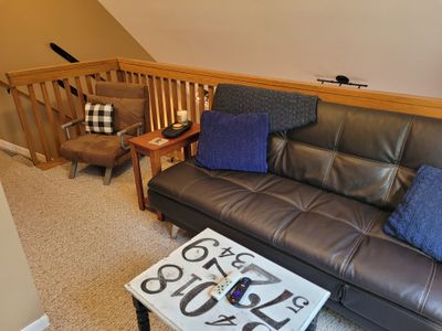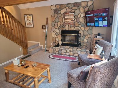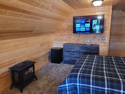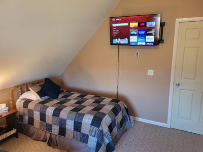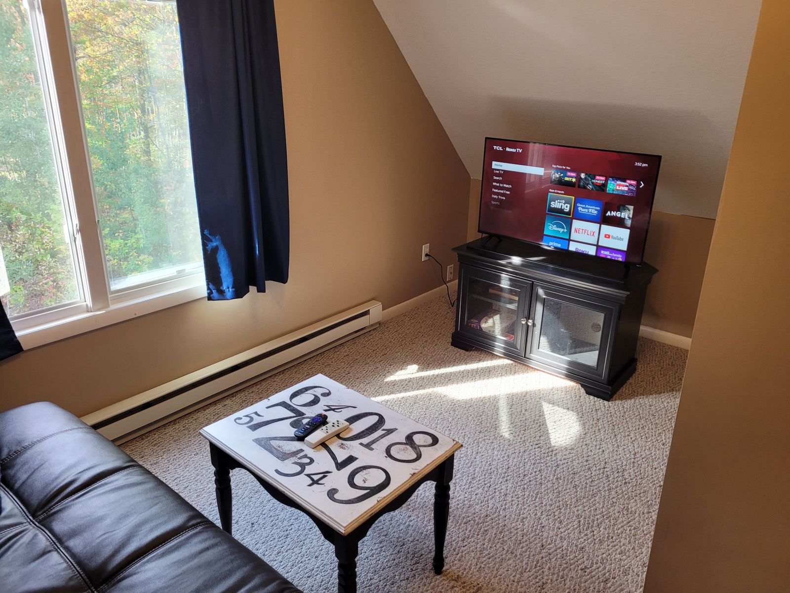 The home has a very comfy living room with a sofa, 2 comfy chairs, coffee table, and a wood fireplace that is available for guests to use. Also has a live-streaming television with Sling included. In addition to the living room, there is an upstairs loft area with a futon, chair, and another live streaming television with Sling. The 2 upstairs bedrooms both have live-streaming televisions with Sling as well. In addition to Sling, the 4 Roku televisions are also equipped with Pureflix, Angel, Netflix, and Disney+ apps with subscriptions to each of these apps included. The home has high-speed Wi-Fi provided by Acentek.