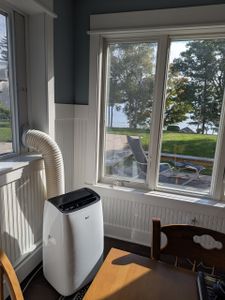 4) AIR CONDITIONING: There is a portable A/C unit and 2 window A/C units in the lake house. There is a window A/C unit in the bedroom of the beach house. The home does NOT have central air conditioning though.