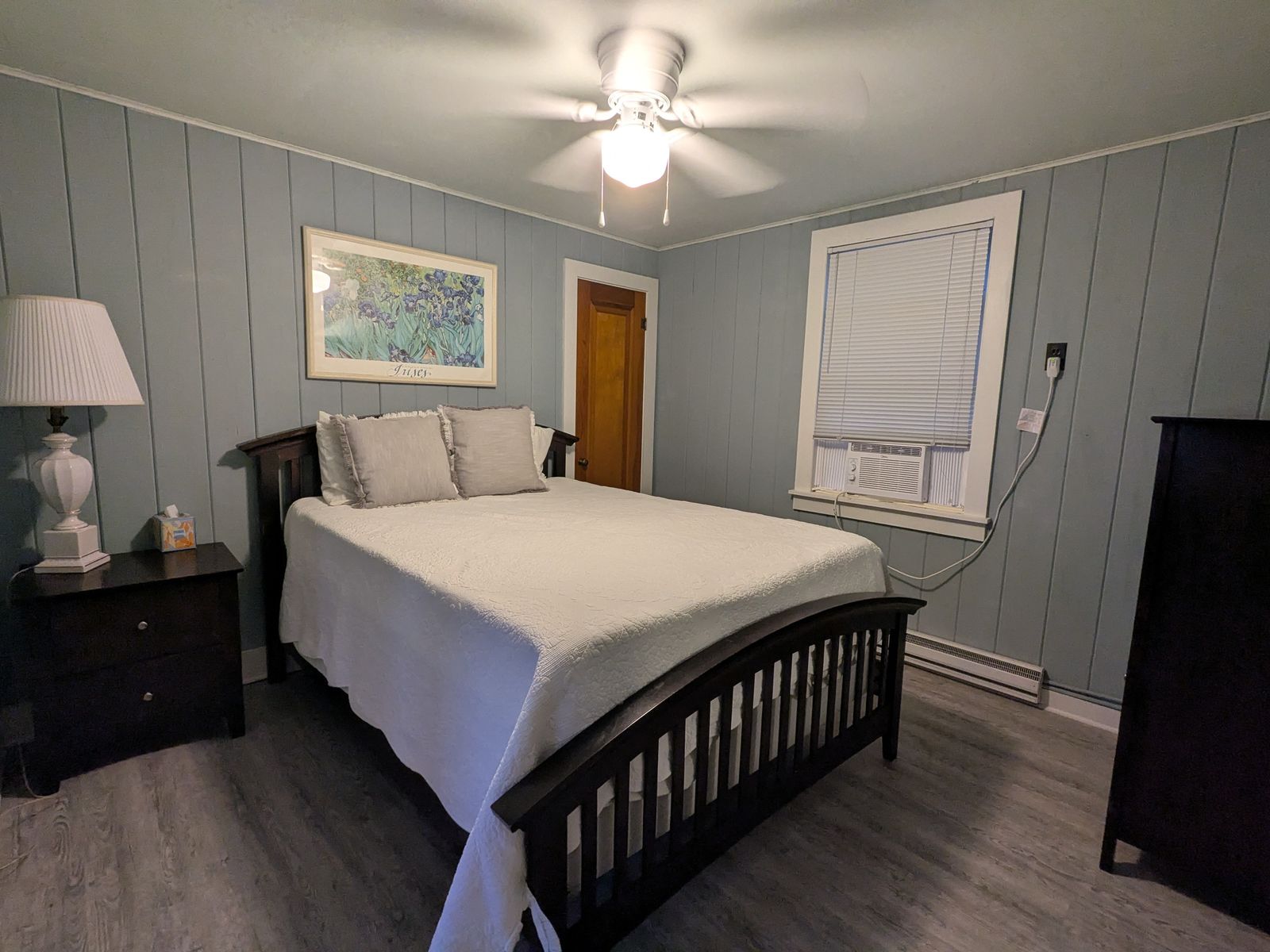 The larger home has been recently updated and is gorgeous inside! It features 4 bedrooms and 3.5 bathrooms and the two main floor bedrooms each have their own en suite private bathroom! Also, the fourth bedroom is very large and basically has its own living area including a sectional sofa, television, and desk along with the two twin beds. This makes for a great area for kids, teenagers, and/or young adults to hang out! The larger home also includes a main floor stacked washer and dryer, Wi-Fi, streaming television, and a large backyard deck with outdoor dining furniture and a gas grill. In terms of air conditioning, the home does NOT have central air conditioning, but there is a portable A/C unit in the living room, a window A/C unit in one of the bedrooms, and a window A/C unit in the upstairs living area.