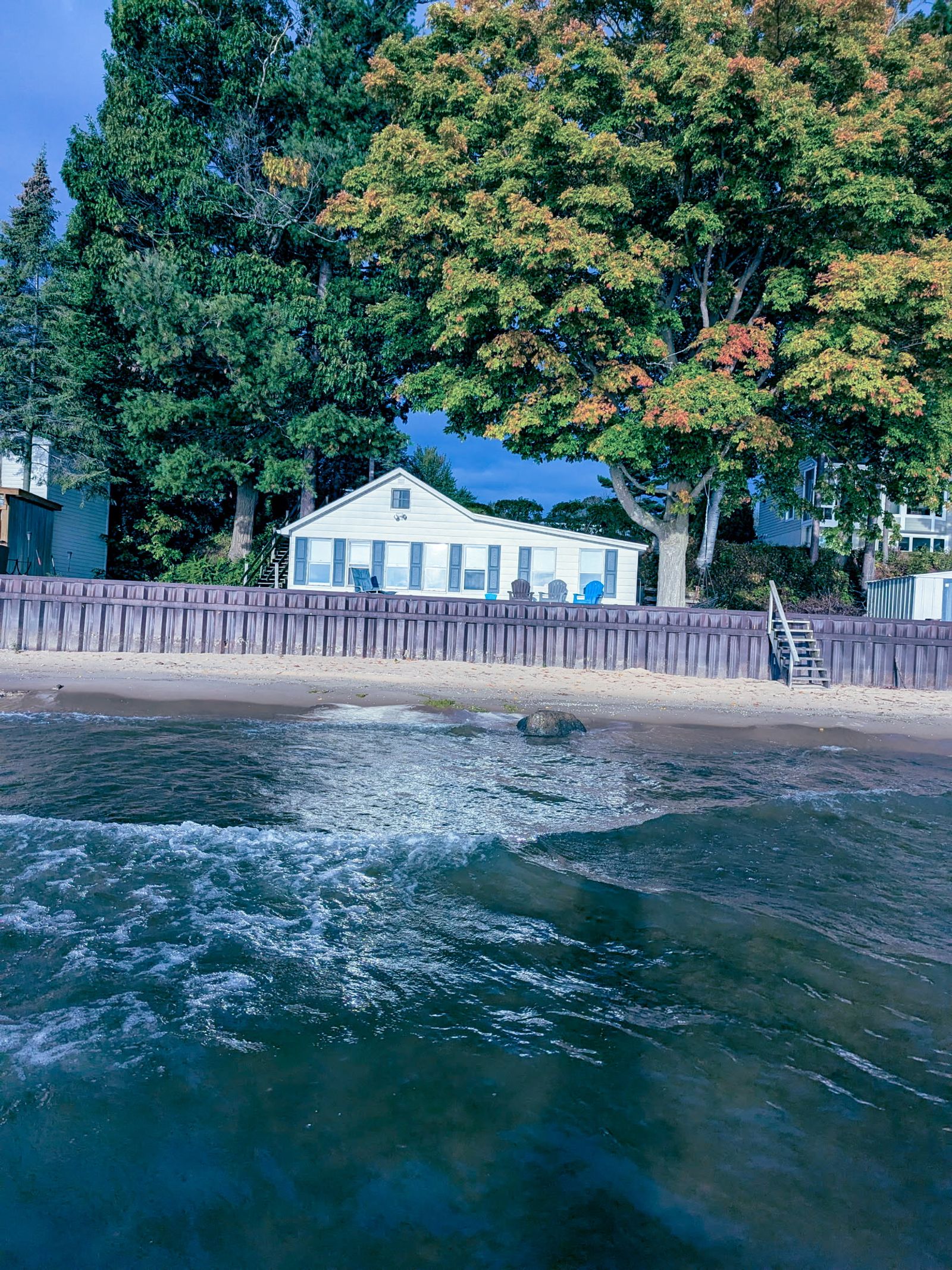 Down basically right on the beach is the older and more rustic beach house. The house is less than 30 feet from the edge of the water! It has a private seawall with stairs going down to the beach and the lake. The beach house has its own full kitchen (just without a dishwasher), dining table, and beds for up to 4 additional people, so it also provides for a great space for a second family, additional family members, and/or teenagers and young adults to hang out. It also has its own beachfront deck, beachfront swing, and fire pit for great bonfires right next to the beach! There is also a window A/C unit in the bedroom. The lake views from the beach house are fantastic and there is generally a wonderfully cool breeze on the beach. PLEASE DO NOTE THAT THE BEACH HOUSE IS QUITE RUSTIC THOUGH. Not all of the windows go up, some of the screens are damaged, and there is somewhat of a musty smell in the house. Hopefully, this is not a big issue, but, if it is, then we would advise guests to only use the newer, larger, and nicer house on the hill or else book elsewhere.
