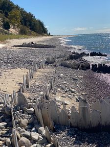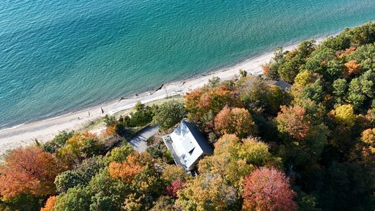 8) BLUFF: The home is on top of a very fragile sand bluff overlooking Lake Michigan. There are huge bags of sand at the base of the bluff to prevent future erosion. Guests are not permitted to climb the sand dune for both their safety and the safety of the bluff. (The private beach can be accessed via the nextdoor neighbor's stairs, which are shared with guests.) Similarly, the driveway portion that is directly between the house and the bluff is blocked off and cars are not permitted on this part of the driveway. This is again for both the safety of guests as well as the safety of the bluff since the top of the driveway is fragile and may give way.