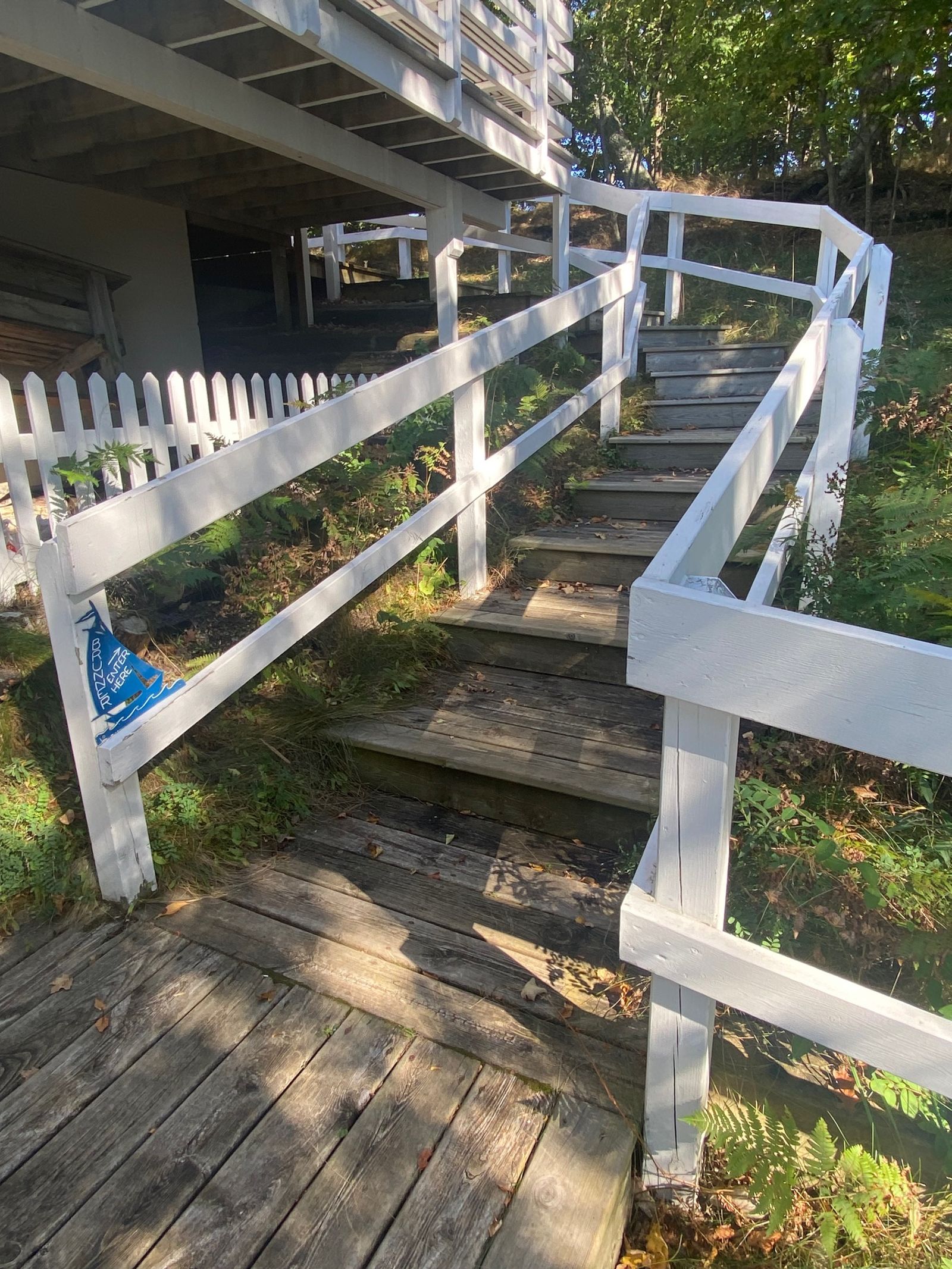 10) HOUSE LIGHTS: Upon arrival can turn lights on via switch near base of stairs. Can also turn stair lights on/off inside house by north sliding door. There are miscellaneous porch & driveway outdoor lights along south cottage wall inside.