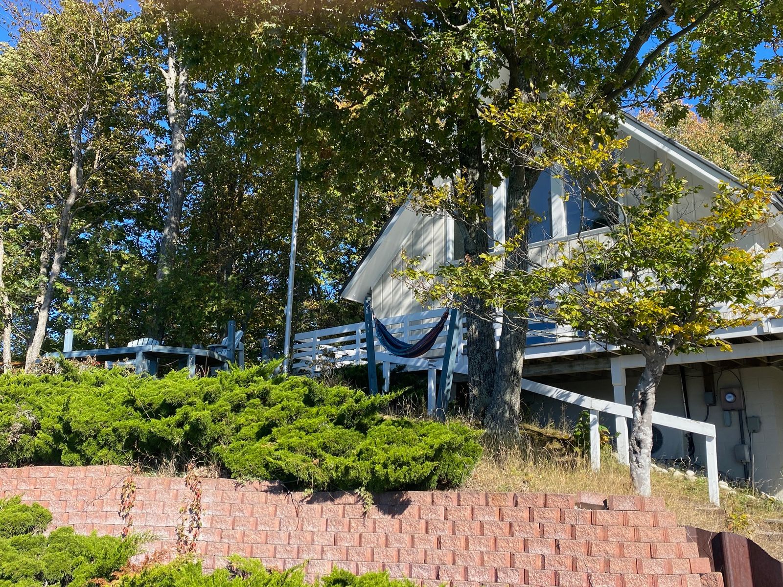 Sunset Serenity is an incredible home! It’s located on a private bluff overlooking Lake Michigan and there are truly spectacular views of Lake Michigan for miles from the home. The home features a wrap-around deck and second detached deck with great lake views from all points. There are also posts and a hammock available for relaxing in a hammock while watching the waves of Lake Michigan from the bluff.