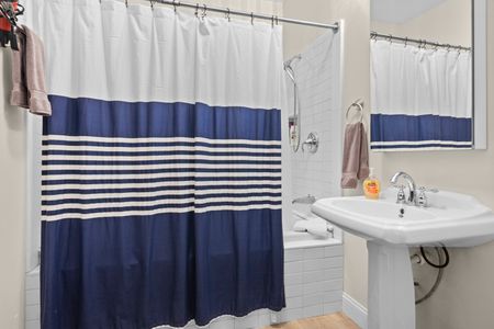 The home is very comfortable year-round with a forced-air gas furnace for heating and central air conditioning for cooling. It also has a completely updated and modern kitchen with all appliances, including a dishwasher and a large kitchen island with bar stools. Note that one of the second floor bathrooms has also been enhanced with a jetted bathtub for guest enjoyment!