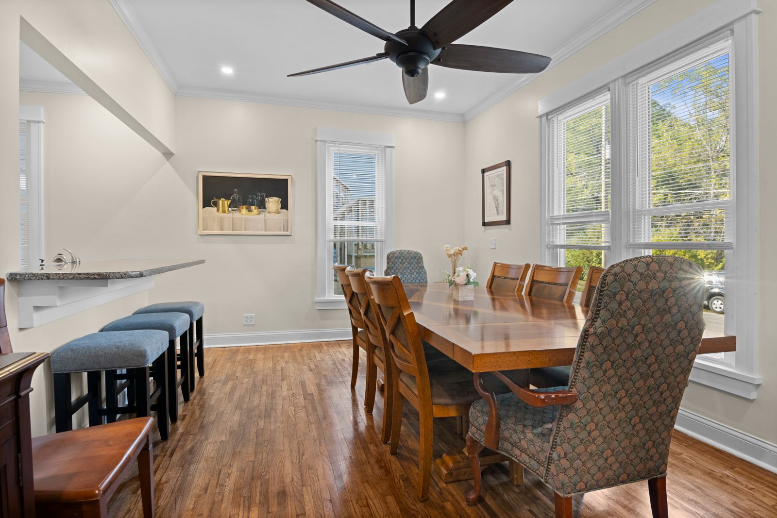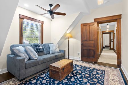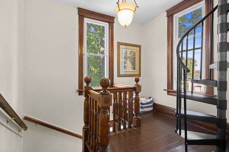 As part of the recent renovation of the house, the home is beautifully decorated with a lot of gorgeous wooden furniture that is consistent with the Victorian design and feel of the house. For an older home, the home has a great deal of natural lighting with a lot of large windows throughout the house. The home is very family-friendly, but children should be careful of the circular stairs leading up to the third floor tower.