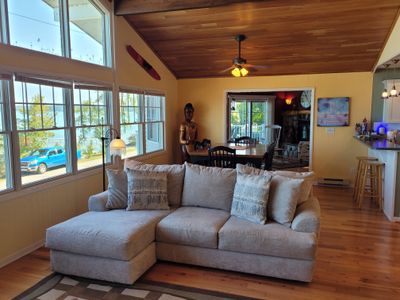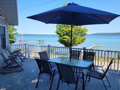 Trader Scott's is a beautifully decorated home on the spectacular south shore of Crystal Lake! Outside, it features a huge dock, mooring buoy for boats, a family-friendly bonfire ring right on the private beach, a huge deck with a gorgeous lakeview, and lots of outdoor furniture for dining and relaxing. Inside, the home is gorgeous with lots of color, windows, and great natural lighting along with a huge kitchen, washer & dryer, and all amenities!